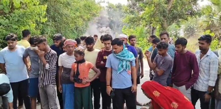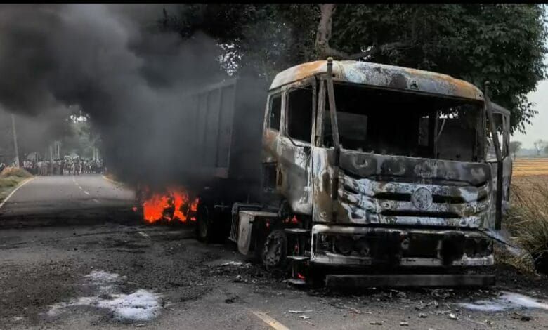 ट्रक की टक्कर से युवक की मौत, गुस्साए ग्रामीणों ने ट्रक को किया आग के हवाले