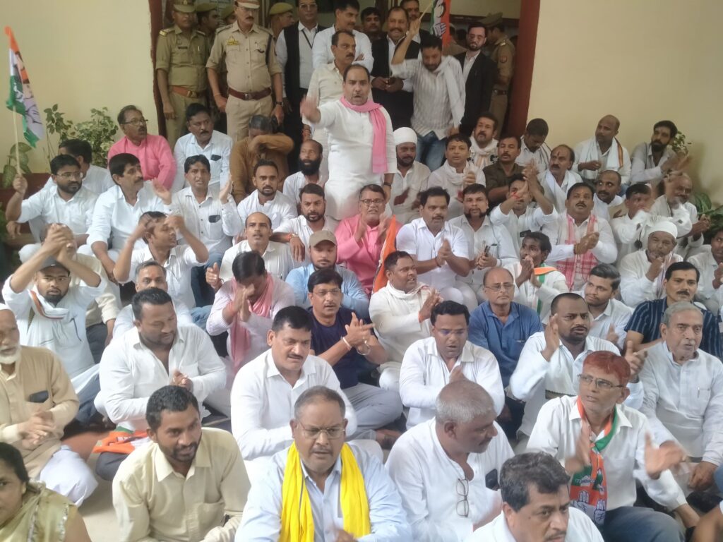 प्रदर्शन के दौरान जिलाधिकारी कार्यालय के पोर्टिको में सैकड़ों कांग्रेस कार्यकर्ताओं ने नारेबाज़ी की, धरना दिया और जिलाधिकारी के प्रतिनिधि एडीएम को एक तीखा ज्ञापन सौंपा।