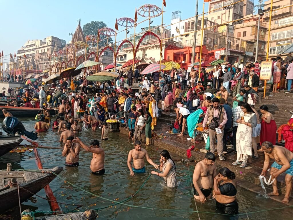 वाराणसी, जनमुख न्यूज़। काशी के गंगा घाटों पर आज एकादशी के साथ साथ मकर संक्रांति के पावन स्नान को लेकर श्रद्धालुओं की भारी भीड़ देखने को मिली। तड़के सुबह से ही लाखों की संख्या में श्रद्धालुओं ने मां गंगा में आस्था की डुबकी लगाकर पुण्य लाभ अर्जित किया। घाटों पर “हर-हर गंगे” और “बम-बम भोले” के जयघोष से पूरा वातावरण भक्तिमय हो गया।
