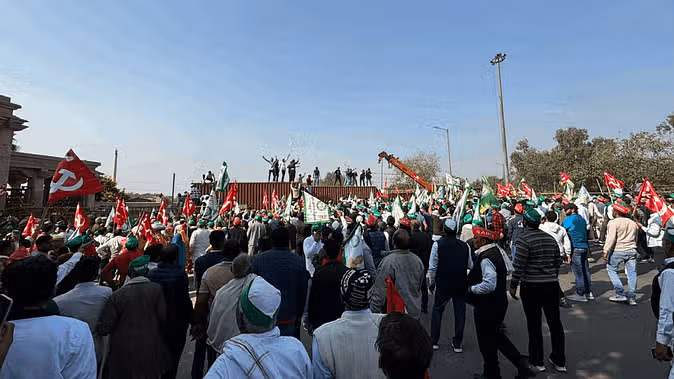 बैरिकेडिंंग तोड़ आगे बढ़े किसान