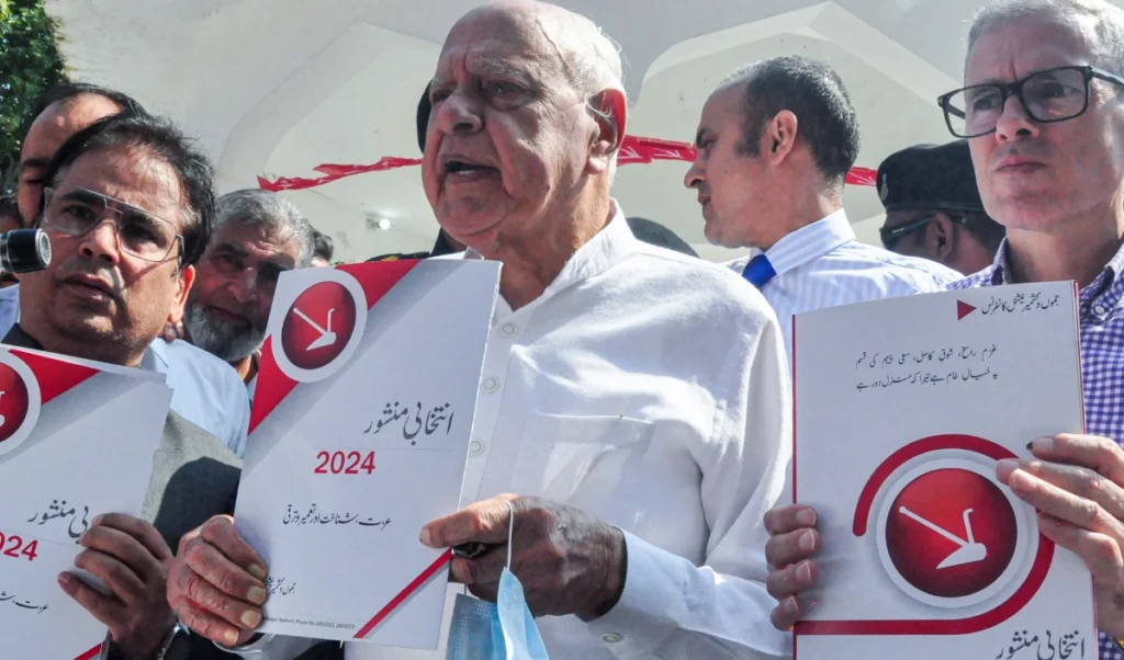 नई दिल्ली,जनमुख न्यूज। नेशनल (नेकां) के अध्यक्ष फारूक अब्दुल्ला ने शुक्रवार को जम्मू कश्मीर विधानसभा के पहले सत्र के अंतिम दिन अध्यक्ष दीर्घा से सदन की कार्यवाही देखी। विधानसभा अध्यक्ष अब्दुल रहीम राठेर ने सदन में कहा अध्यक्ष दीर्घा में मशहूर व्यक्ति डॉ. फारूक अब्दुल्ला मौजूद हैं। मैं सभी सदस्यों से अनुरोध करता हूं कि वे मेरे साथ उनका स्वागत करें।’’ नयी विधानसभा का पहला सत्र सोमवार को शुरू हुआ और इसका समापन शुक्रवार को होगा।