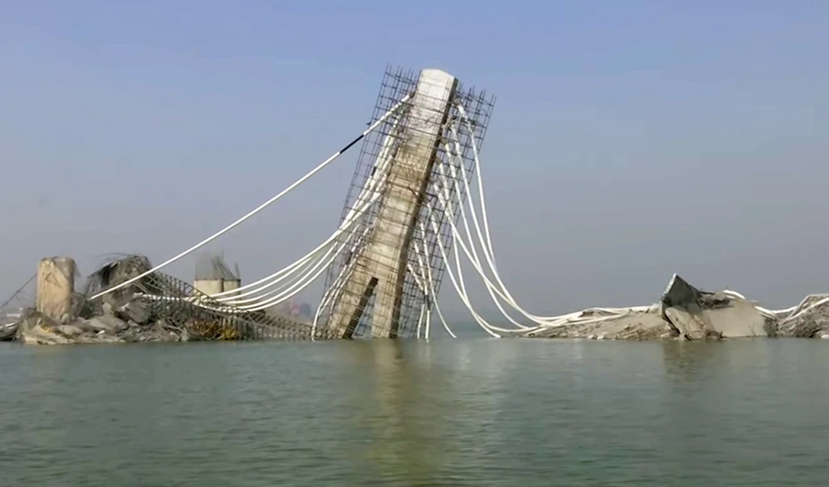 बिहार में अगुवानी सुल्तानगंज ब्रिज का एक हिस्सा ढह गया।