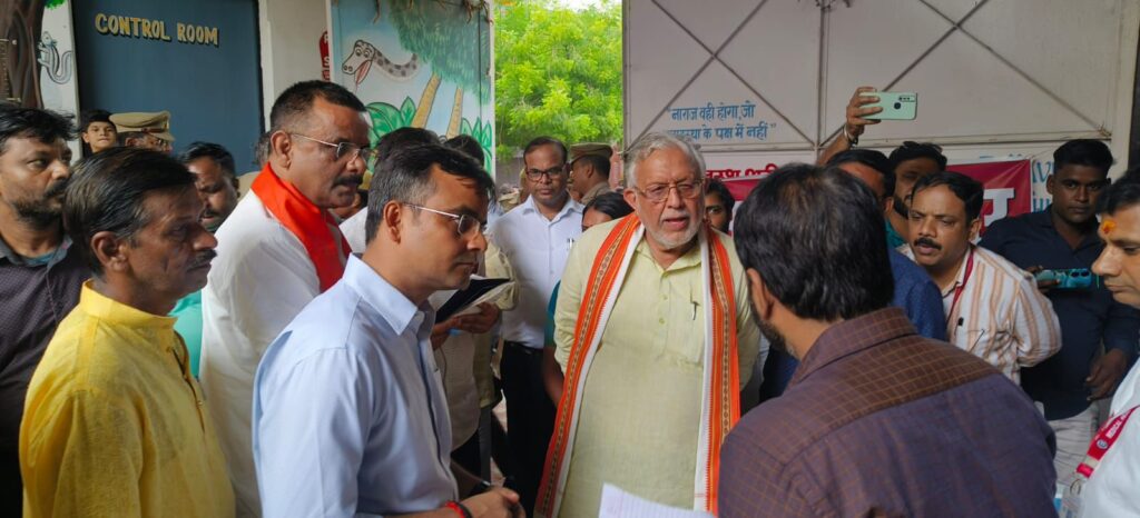वाराणसी, जनमुख न्यूज़। उत्तर प्रदेश के वित्त एवं संसदीय कार्य तथा जनपद वाराणसी के प्रभारी मंत्री सुरेश खन्ना ने सोमवार को बाढ़ क्षेत्र का तूफानी दौरा कर वाराणसी में आए बाढ़ की स्थिति का जायजा लिया। निरीक्षण के दौरान प्रभारी मंत्री ने बाढ़ प्रभावित क्षेत्रों में बाढ़ पीड़ितों से मिलकर उनकी समस्याओं से भी रूबरू हुए तथा योगी सरकार की ओर से हर संभव सहयोग का उन्हें भी भरोसा दिया।