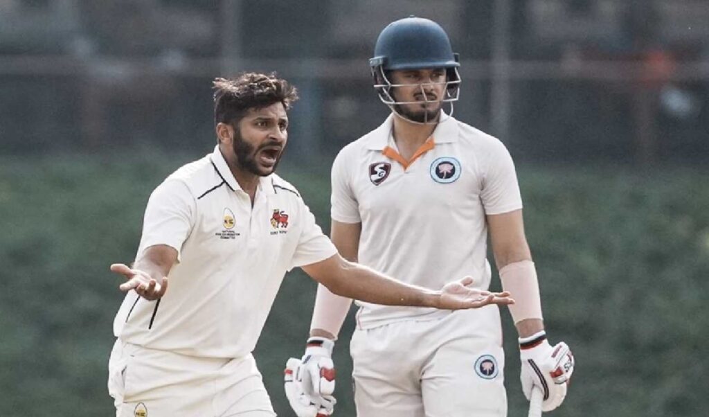 वहीं शार्दुल ठाकुर ने पहले ओवर में ही सलामी बल्लेबाज निशांत चक्रवर्ती को पवेलियन का रास्ता दिखाया। इसके बाद तीसरे ओवर में हैट्रिक लेकर उन्होंने मेहमान टीम की कमर तोड़ दी। ठाकुर ने तीसरे ओवर की आखिरी तीन गेंदों पर बी अनिरुद्ध, सुमित कुमार और जसकीरत को शून्य पर आउट कर अपनी पहली फर्स्ट क्लास हैट्रिक ली।