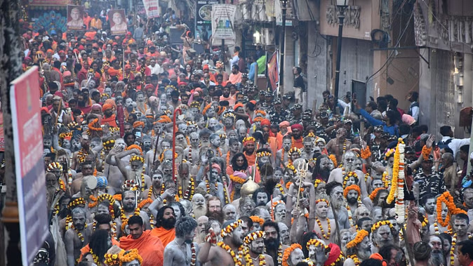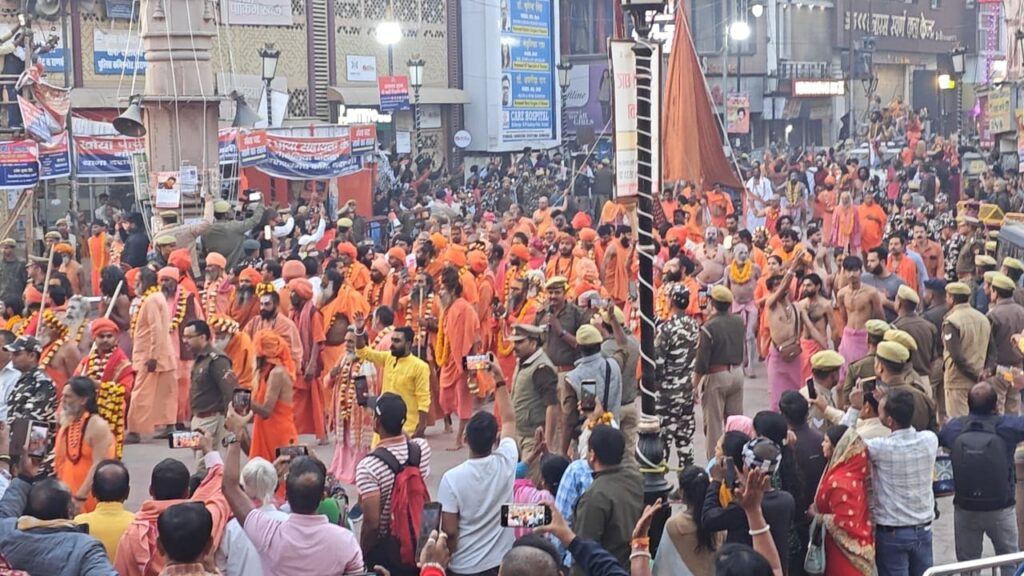 नागा श्रद्धालुओं की पेशवाई की शोभा यात्रा के दौरान हनुमान घाट से बाबा के धाम तक श्रद्धालुओं ने दिव्य और भव्य नजारे का दर्शन किया। भव्य शोभा यात्रा के बाद हर-हर महादेव का जयकारा लगाते हुए नागा संन्यासियों की टोली धाम में पहुंची।