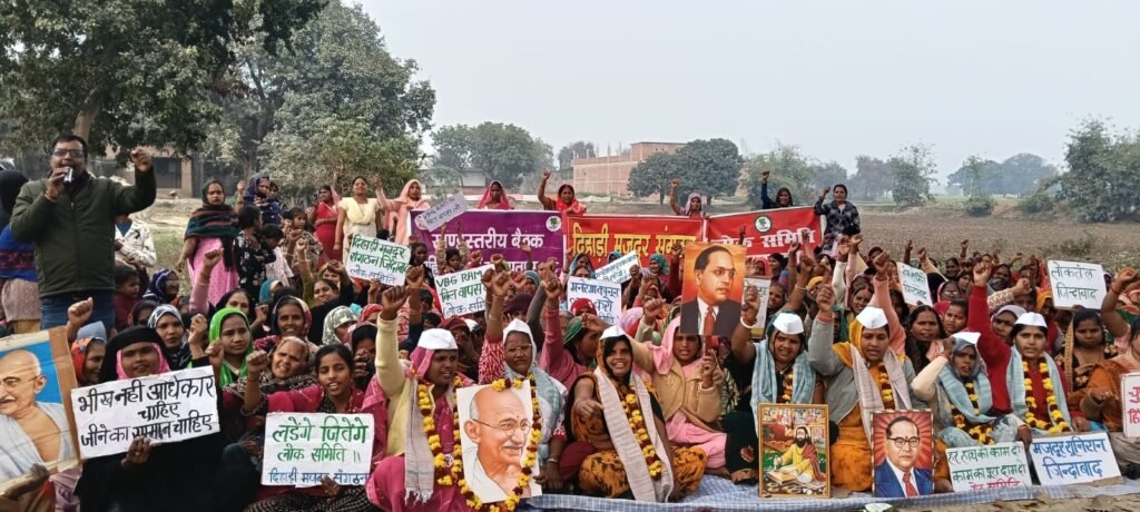 वाराणसी,जनमुख न्यूज़ (मिर्जामुराद)। मनरेगा दिवस के अवसर पर दिहाड़ी मजदूर संगठन एवं लोक समिति के संयुक्त तत्वावधान में सेवापुरी ब्लॉक के खालिसपुर गांव में मजदूरों की एक विशाल महापंचायत का आयोजन किया गया। महापंचायत में सेवापुरी ब्लॉक के दर्जनों गांव से चार सौ में ग्रामीण मजदूर, महिला श्रमिक और बेरोज़गार युवक-युवतियाँ शामिल हुए।महापंचायत को संबोधित करते हुए वक्ताओं ने कहा कि केंद्र और राज्य सरकार की नीतियों के कारण मनरेगा जैसी जनकल्याणकारी योजना को लगातार कमजोर किया जा रहा है। समय पर काम न मिलना, मजदूरी भुगतान में देरी और कार्य दिवसों में कटौती से मजदूर भुखमरी के कगार पर पहुँच गए हैं।सभा में मजदूरों ने मनरेगा की पूर्ण बहाली, 200 दिन काम, 600 रुपये दैनिक मजदूरी तथा जीआरजी (जी राम जी) अध्यादेश को तत्काल वापस लेने की माँग उठाई। मजदूरों का कहना था कि यह अध्यादेश मजदूर विरोधी है और इससे गरीबों के संवैधानिक अधिकारों पर हमला हो रहा है।लोक समिति संयोजक नंदलाल मास्टर ने तीखा बयान देते हुए कहा,“मनरेगा मजदूरों का दान नहीं, उनका कानूनी अधिकार है। सरकार अगर इसे खत्म करने की साज़िश करेगी तो मजदूर सड़कों पर उतरकर जवाब देंगे। जीआरजी अध्यादेश गरीबों को डराने और आंदोलनों को कुचलने का हथियार है, जिसे किसी भी हालत में बर्दाश्त नहीं किया जाएगा।इस दौरान खेतिहर घरेलू कामगार महिला मजदूर संगठन का सेवापुरी ब्लॉक स्तरीय चुनाव किया गया। जिसमें अध्यक्ष रानी(करधना), उपाध्यक्ष गुड्डी (लेधुवाई), सचिव वन्दना(ख़लीसपुर), कोषाध्यक्ष गीता (राने)और सलीमुन (गौर),शीला (प्रतापपुर) व सोनी (चंगवार)को संगठन मंत्री बनाया गया. सभी नव निर्वाचित पदाधिकारियों को गांधी टोपी, अंगवस्त्र और माला पहनाकर स्वागत किया गया.कार्यक्रम में मुख्यरूप से चंदा, माधुरी,उषा,निर्मला, असगरी,रूबी, बढ़ामा, रेनू,मनोरमम, मुन्नी,बसंती,अनीता, बिमला, सोनी मनीषा आशा राय रामबचन, आदि लोग मौजूद रहे. कार्यक्रम का संचालन आशा राय, अध्यक्षता सोनी, स्वागत मनीषा, धन्यवाद अनीता ने किया.