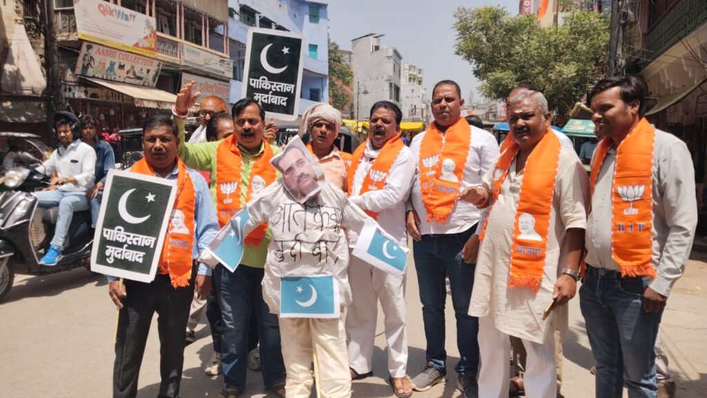 आतंकी हमले को लेकर काशी में आक्रोश, आतंकवाद का पुतला फूंका