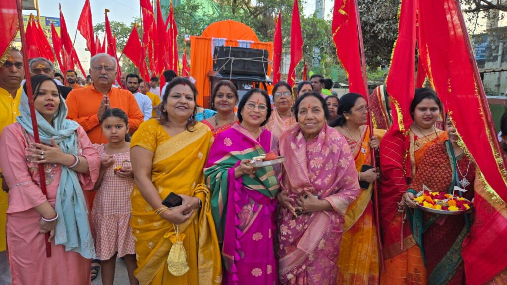 वाराणसी, जनमुख न्यूज़। हनुमान ध्वजा प्रभात फेरी समिति की ओर से 30मार्च से 12अप्रैल तक रजत जयंती हनुमान ध्वजा महोत्सव के उपलक्ष्य में आज प्रथम दिन प्रातः 6 बजे धर्म संघ से निकली हनुमान ध्वजा यात्रा रविंद्र पुरी दुर्गाकुंड त्रिदेव मंदिर होते हुए संकट मोचन मंदिर पहुंची जहां भक्तों द्वारा प्रभु के चरणों में ध्वजा अर्पण किया। इसके पूर्व राज्य मंत्री दयाशंकर मिश्र दयालु आईआईएम राष्ट्रीय उपाध्यक्ष रमेश कुमार चौधरी द्वारा संकट मोचन प्रभु का पूजन अर्चन कर आरती उतारी तत्पश्चात भक्तों को ध्वजा देकर यात्रा का शुभारंभ किया। यात्रा में सबसे आगे हनुमान ध्वजा चल रही थी और गाड़ी पर संकट मोचन का