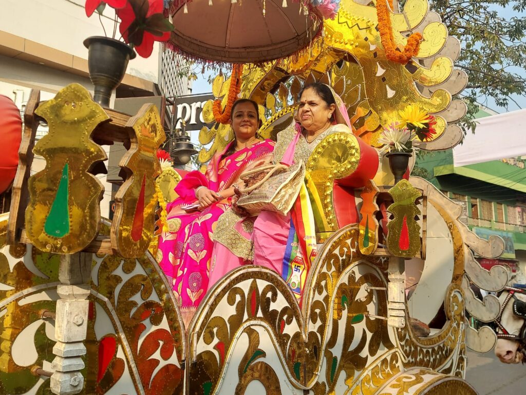 इस अवसर पर सुसज्जित घोड़े पर समाज के बच्चे विराजमान थे और सजी सजी-धजी विशाल रथ पर में देवताओं के रूप में जैन दंपति जुलूस की शोभा को बढ़ा रहें थे, एक हाथी प्रभु के विशाल रथ को खींच रहा था जिन रास्तों पर शोभा यात्रा निकाली उन रास्तों के दुकानदारों ने फूलों की पंखुड़ी बरसा कर प्रभु का स्वागत किया जैन समाज के लोग भाव तल्लीन होकर प्रभु की भक्ति में भजन गाते हुए चल रहे थे।