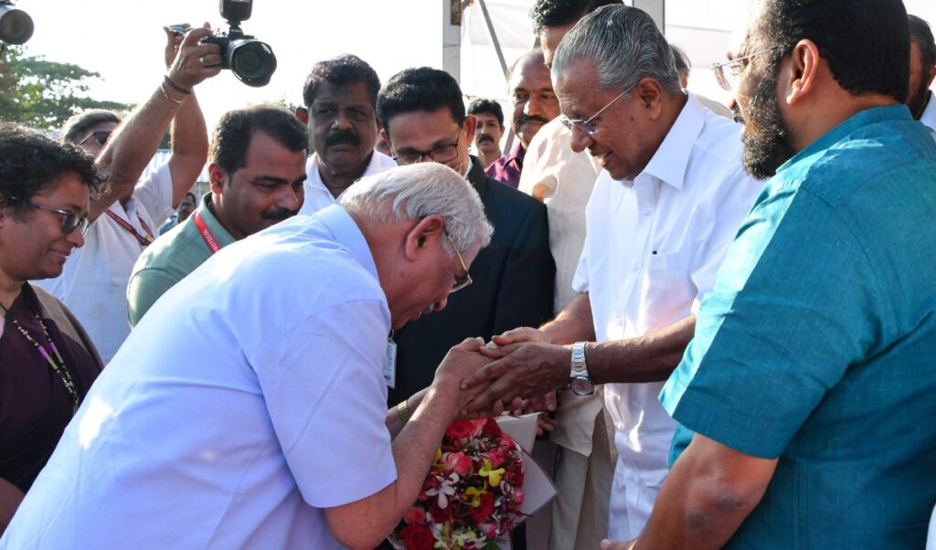 नई दिल्ली, जनमुख न्यूज। राजेंद्र विश्वनाथ आर्लेकर ने बृहस्पतिवार को यहां राजभवन में आयोजित एक समारोह में केरल के २३वें राज्यपाल के रूप में शपथ ली। केरल उच्च न्यायालय के मुख्य न्यायाधीश न्यायमूर्ति नितिन जामदार ने सुबह १०.३० बजे आर्लेकर को शपथ दिलाई। आर्लेकर ने आरिफ मोहम्मद खान का स्थान लिया है जिन्हें बिहार का राज्यपाल नियुक्त किया गया है। शपथ ग्रहण समारोह में केरल के मुख्यमंत्री पिनराई विजयन, उनके कैबिनेट सहयोगियों, विभिन्न राजनीतिक दलों के वरिष्ठ नेताओं ने भाग लिया। आर्लेकर बुधवार को यहां पहुंचे थे। मुख्यमंत्री विजयन, केरल विधानसभा अध्यक्ष ए एन शमसीर और मंत्रियों के. राजन तथा रामचंद्रन कदन्नापल्ली ने उनका अंतरराष्ट्रीय हवाई अड्डे पर स्वागत किया था। राष्ट्रपति द्रौपदी मुर्मू ने पिछले सप्ताह खान को बिहार का नया राज्यपाल और आर्लेकर को केरल का राज्यपाल नियुक्त किया था।