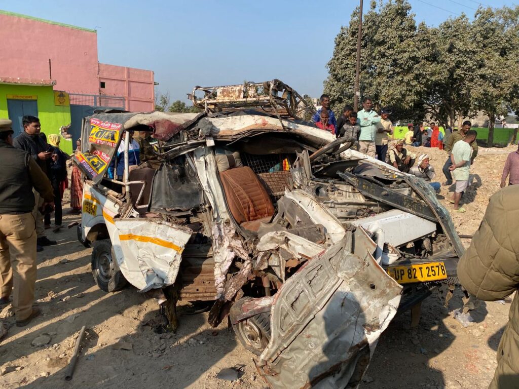 हाथरस में कंटेनर और मैक्स की टक्कर सात की मौत