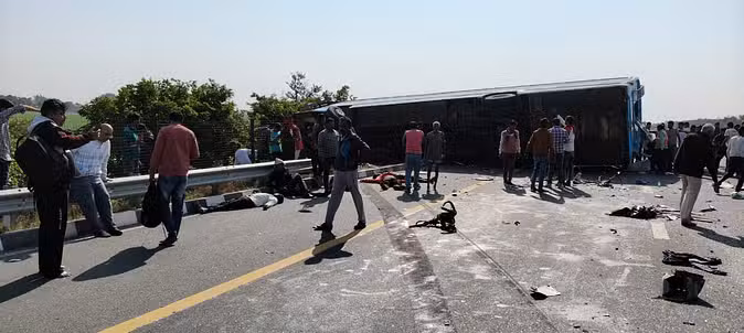 एक्सप्रेसवे पर पलटी स्लीपर बस, छह यात्रियों की मौत ,40 लोग घायल