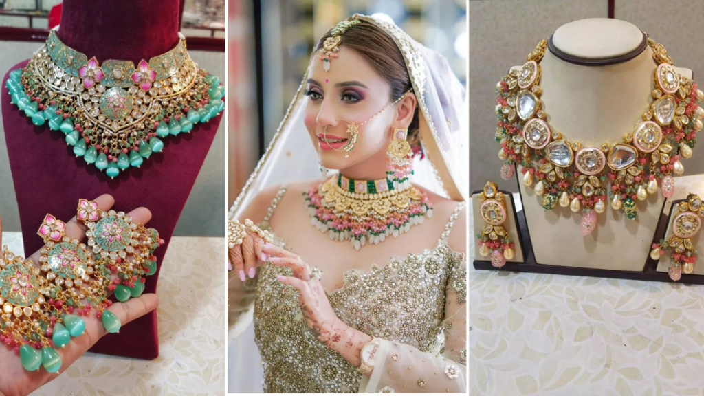 आउटफिट के साथ ज्वेलरी हमारे लुक में चार चांद लगाने का काम करती हैं। इसी वजह से महिलाएं अपने आउटफिट के साथ मैचिंग की परफेक्ट ज्वेलरी स्टाइल करना पसंद करती हैं। वहीं अगर आप भी किसी पार्टी या फंक्शन में जाने की तैयारी कर रही हैं और रॉयल लुक पाना चाहती हैं, तो स्टोन वर्क नेकलेस अपने आउटफिट के साथ स्टाइल कर सकती हैं। ऐसे में आज इस आर्टिकल के जरिए हम आपको कुछ लेटेस्ट डिजाइंस वाले स्टोन वर्क नेकलेस सेट के बारे में बताने जा रहे हैं। जिनको ऑउटफिट के साथ स्टाइल करने पर आपको रॉयल लुक मिलेगा। वहीं यह नेकलेस आपको सस्ते दाम में मिल सकते हैं।