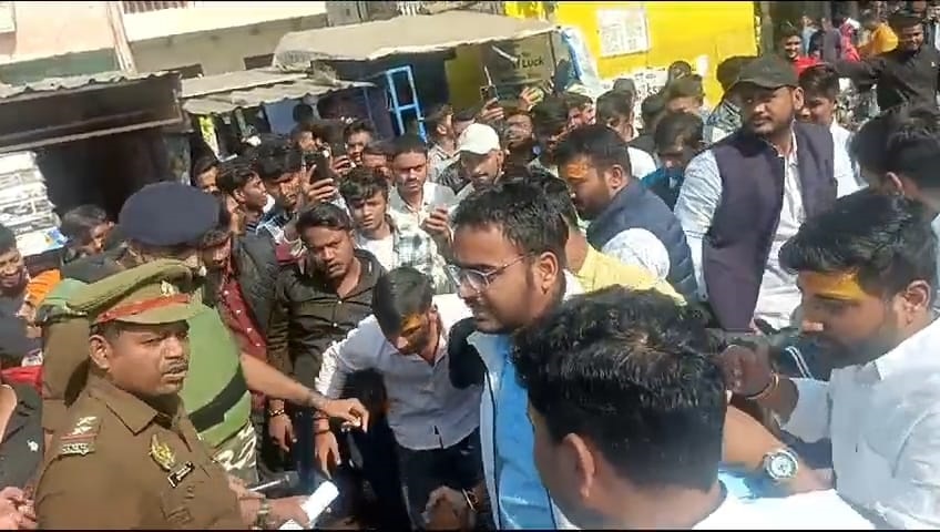 वाराणसी, जनमुख न्यूज। यूपी कॉलेज परिसर में मुस्लिमों के नमाज पढ़ने को लेकर छात्रों ने अपनी भारी नाराजगी जताई। शुक्रवार को सैकड़ों छात्रों ने कॉलेज के गेट पर प्रदर्शन किया। अंदर जा रहे छात्रों को पुलिस ने गेट बंद कर बाहर ही रोक दिया। मौके पर घंटों पर जय श्रीराम के नारों के साथ छात्र जमे रहे।छात्रों और पुलिस के बीच धक्कामुक्की भी हुई। छात्र अंदर जाकर हनुमान चालीसा पढ़ने की मांग पर जिद कर रहे थे। छात्र नेताओं ने कहा कि वक्फ बोर्ड के लोग वाराणसी की शांति व्यवस्था को बिगाड़ना चाहते हैं। यहां अब कोई भी नमाज नहीं पढ़ेगा। इसके लिए हम सारी लड़ाईयां लड़ने को तैयार हैं।पुलिस प्रशासन और एसीपी विद्युत सक्सेना ने उग्र छात्रों को समझाकर लौटा दिया। एसीपी ने बताया कि वीडियो में जो उग्र छात्र दिखेंगे उनके खिलाफ कार्रवाई की जाएगी। कुछ छात्र पुलिस की जीप पर चढ़ गए थे। उन्हें उतारकर पुलिस ने हिरासत में ले लिया।इसके पहले पुलिस आयुक्त मोहित अग्रवाल ने यूपी कॉलेज प्रशासन ने परिसर का माहौल शांतिपूर्ण बनाए रखने की अपील की थी। अनुरोध किया था कि शैक्षणिक गतिविधियां प्रभावित न हों। किसी भी तरह से माहौल बिगाड़ने का प्रयास करने वालों के साथ पुलिस सख्ती से पेश आएगी।