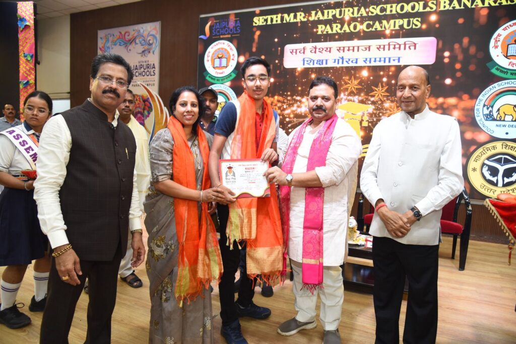 वाराणसी, जनमुख न्यूज़। रविवार को सर्व वैश्य समाज समिति द्वारा सेठ एम आर जयपुरिया स्कूल बनारस के पड़ाव कैम्पस में सर्व वैश्य समाज के उन तेजस्वी विद्यार्थियों को सम्मानित किया गया जिन्होंने बोर्ड परीक्षाओं में उत्कृष्ट प्रदर्शन किया है ।