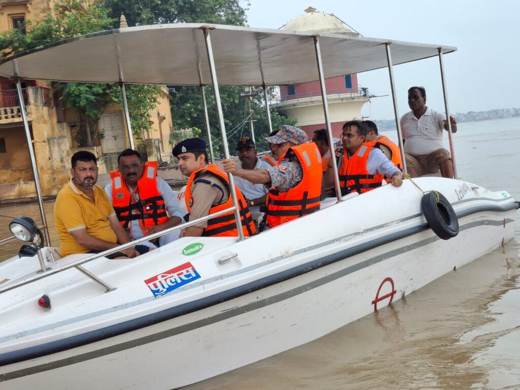 वाराणसी, जनमुख न्यूज़। महापौर अशोक तिवारी के साथ बुधवार को जिलाधिकारी सत्येंद्र कुमार ने जल पुलिस के मोटर वोट से हरिशचंद्र घाट, हर्षद घाट, रविदास घाट, सामने घाट, ज्ञान प्रवाह आदि प्रभावित क्षेत्रों में तूफानी दौरा कर बाढ़ राहत के लिए किये जा रहे कार्यों का निरीक्षण किया। इस दौरान उन्होंने बाढ़ प्रभावित क्षेत्र के लोगों को राहत सामग्री उपलब्ध कराए जाने के साथ ही उनकी समस्याओं के बारे में भी उनसे वार्तालाप की तथा लोगों को आश्वस्त किया कि उन्हें किसी भी प्रकार की परेशानी नहीं होने दी जाएगी। यथासंभव सहयोग उन्हें उपलब्ध कराया गया है और आवश्यकतानुसार उन्हें उपलब्ध कराया भी जाएगा। निरीक्षण के दौरान जिलाधिकारी लाउड हेलर से बाढ़ प्रभावित क्षेत्र के लोगों को अपने जन-धन की सुरक्षा करने तथा किसी भी आकस्मिक स्थिति में सूचना दिए जाने हेतु अवगत करा रहे थे। इस दौरान महापौर एवं जिलाधिकारी ने छोटे-छोटे बच्चों को बिस्कुट, चॉकलेट आदि भी उपलब्ध कराए।