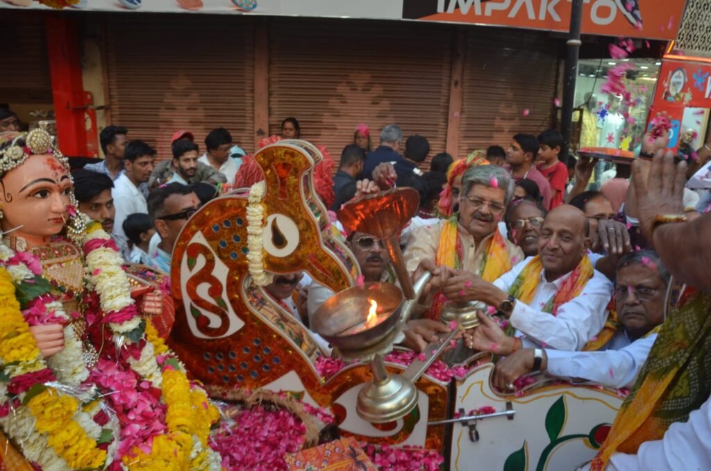 वाराणसी, जनमुख न्यूज़। शनिवार को मां गवरजा की भव्य शोभायात्रा बड़े ही धूमधाम और श्रद्धा के साथ निकाली गई। वाराणसी गवरजा माता उत्सव समिति की ओर से यह शोभायात्रा गोलघर स्थित काशी गोशाला से प्रारंभ हुई, जिसमें बड़ी संख्या में श्रद्धालु शामिल हुए।शोभायात्रा बुलानाला, नीचीबाग, चौक, बांसफाटक और गोदौलिया होते हुए आगे बढ़ी। गोदौलिया पहुंचने पर मारवाड़ी सेवा समिति और राजस्थान ब्राह्मण मंडल के संयुक्त तत्वावधान में भव्य स्वागत किया गया। इस दौरान मां गवरजा की गंगा आरती की तर्ज पर महाआरती उतारी गई और पुष्प वर्षा कर भक्तों का स्वागत किया गया।संयोजन समिति के पदाधिकारियों का भी माल्यार्पण कर सम्मान किया गया। इसके बाद शोभायात्रा गिरिजाघर होते हुए लक्सा स्थित मारवाड़ी समाज भवन पहुंची, जहां संस्था के पदाधिकारियों ने श्रद्धालुओं को शरबत पिलाकर स्वागत किया।अंत में शोभायात्रा लक्ष्मीकुंड स्थित श्याम मंदिर पहुंची, जहां मां गवरजा की प्रतिमा स्थापित की गई। यहां राजस्थानी और हरियाणवी समाज की युवतियों ने विधि-विधान से पूजा-अर्चना कर आशीर्वाद प्राप्त किया। पूरे मार्ग में भक्तिमय माहौल बना रहा और श्रद्धालु भक्ति में सराबोर नजर आए।