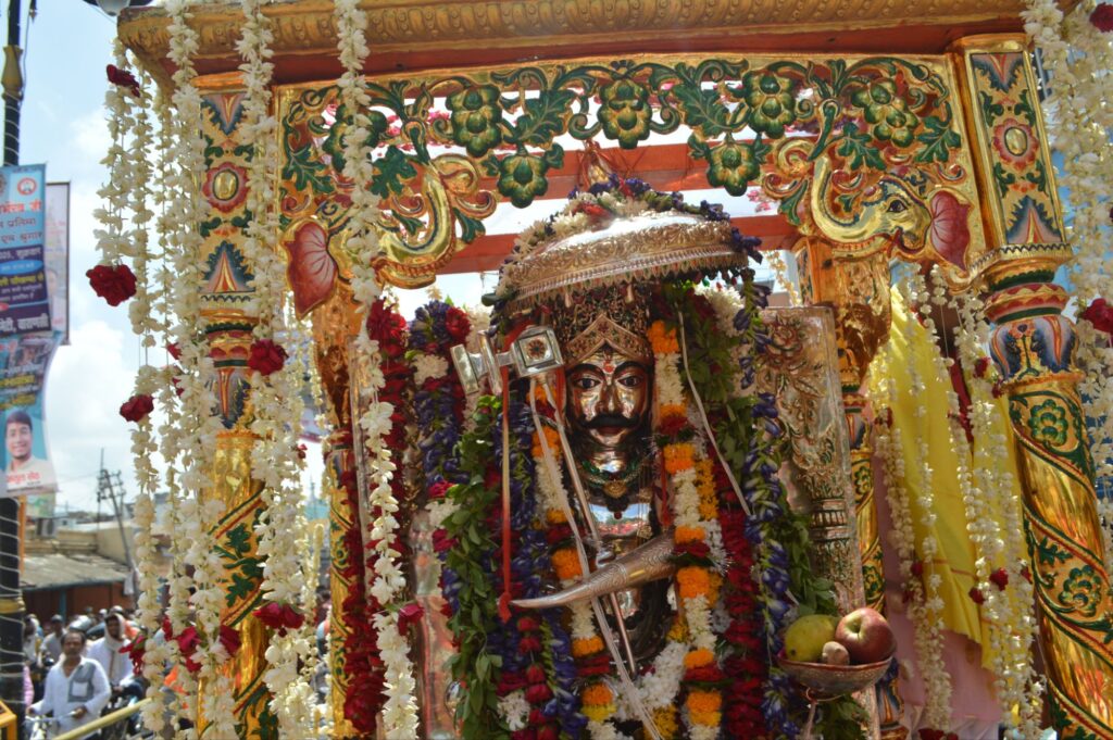 स्वर्णिम रथ पर निकली बाबा कालभैरव जी के स्वर्ण रजत पंचबदन प्रतिमा की शोभायात्रा