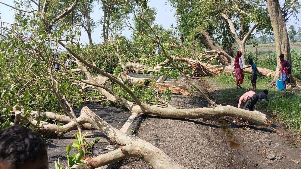 तेज आंधी से पलिया-भीरा मुख्य मार्ग समेत कई स्थानों पर पेड़ गिर गए, जिससे यातायात पूरी तरह बाधित रहा। वन विभाग और ग्रामीणों की मदद से दोपहर तक मार्ग से पेड़ों को हटाने का कार्य चला। क्षेत्र में ओलावृष्टि और भारी बारिश भी हुई।