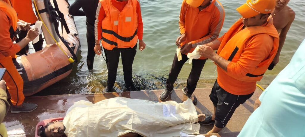 वाराणसी, जनमुख न्यूज। वाराणसी के पंचगंगा घाट पर मंगलवार को नेपाल से काशी घूमने आए राजेश श्रेष्ठ नामक ३२ वर्षीय युवक की गहरे पानी में जाने से मौत हो गई। राजेश के साथ आए उसके दोस्तों ने घटना की सूचना आसपास मौजूद लोगों की मदद से पुलिस को दी। मौके पर पहुंची पुलिस और डीआरएफ की टीम की मदद से शव को बाहर निकालकर पोस्टमार्टम के लिए रखवाया गया। साथ ही घटना की सूचना परिजनों को दी गई।