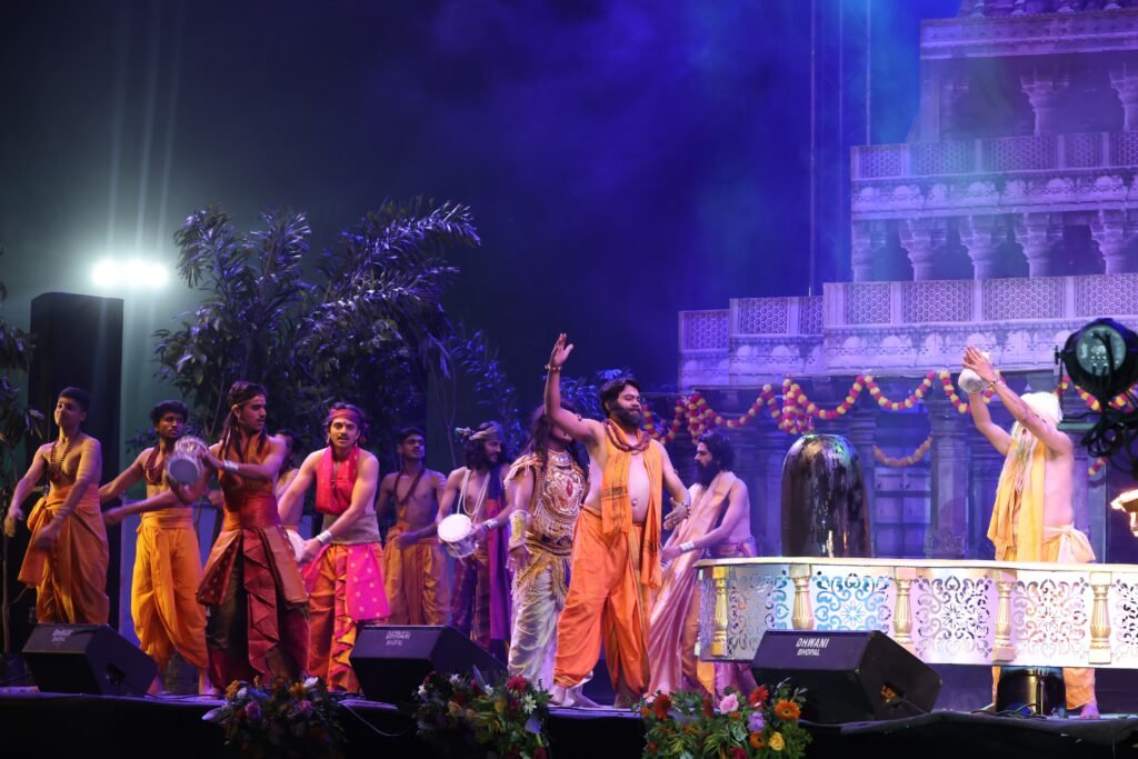 उत्तर प्रदेश सरकार के सहयोग से मध्य प्रदेश सरकार की संस्कृति पर्यटन एवं जनसंपर्क विभाग ने इसे “भारत के स्वाभिमान, नवजागरण और विकास की यात्रा का उत्सव” के रूप में प्रस्तुत किया है, जो आने वाली पीढ़ियों को भारतीय संस्कृति, न्याय व्यवस्था और आदर्श शासन प्रणाली से परिचित कराए।कार्यक्रम की सबसे बड़ी विशेषता इसका अद्वितीय मंचन रहा। आयोजन स्थल पर एक साथ तीन विशाल मंच तैयार किए गए, जिन पर समांतर रूप से विभिन्न दृश्य प्रस्तुत किए गए। यह दृश्यांकन इतना सजीव था कि दर्शकों को ऐसा प्रतीत हुआ मानो वे किसी महानाट्य का नहीं, बल्कि वास्तविक ऐतिहासिक घटनाओं का प्रत्यक्ष अनुभव कर रहे हों। इन तीन मंचों के माध्यम से सम्राट विक्रमादित्य के जीवन के बाल्यकाल, वीरता और युद्ध कौशल, न्यायप्रियता, प्रजा के प्रति करुणा और समर्पण तथा विद्वानों और कला के प्रति सम्मान आदि विभिन्न पहलुओं को दर्शाया गया। हर मंच पर दृश्य परिवर्तन, प्रकाश व्यवस्था और ध्वनि प्रभाव इतने सटीक थे कि दर्शकों की नजरें एक पल के लिए भी मंच से नहीं हटीं।